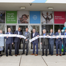 Bayer executives and esteemed elected officials celebrate the grand opening of Bayer's expanded manufacturing facility in Myerstown, PA (Daniel Shanken/AP Content Services for Bayer)